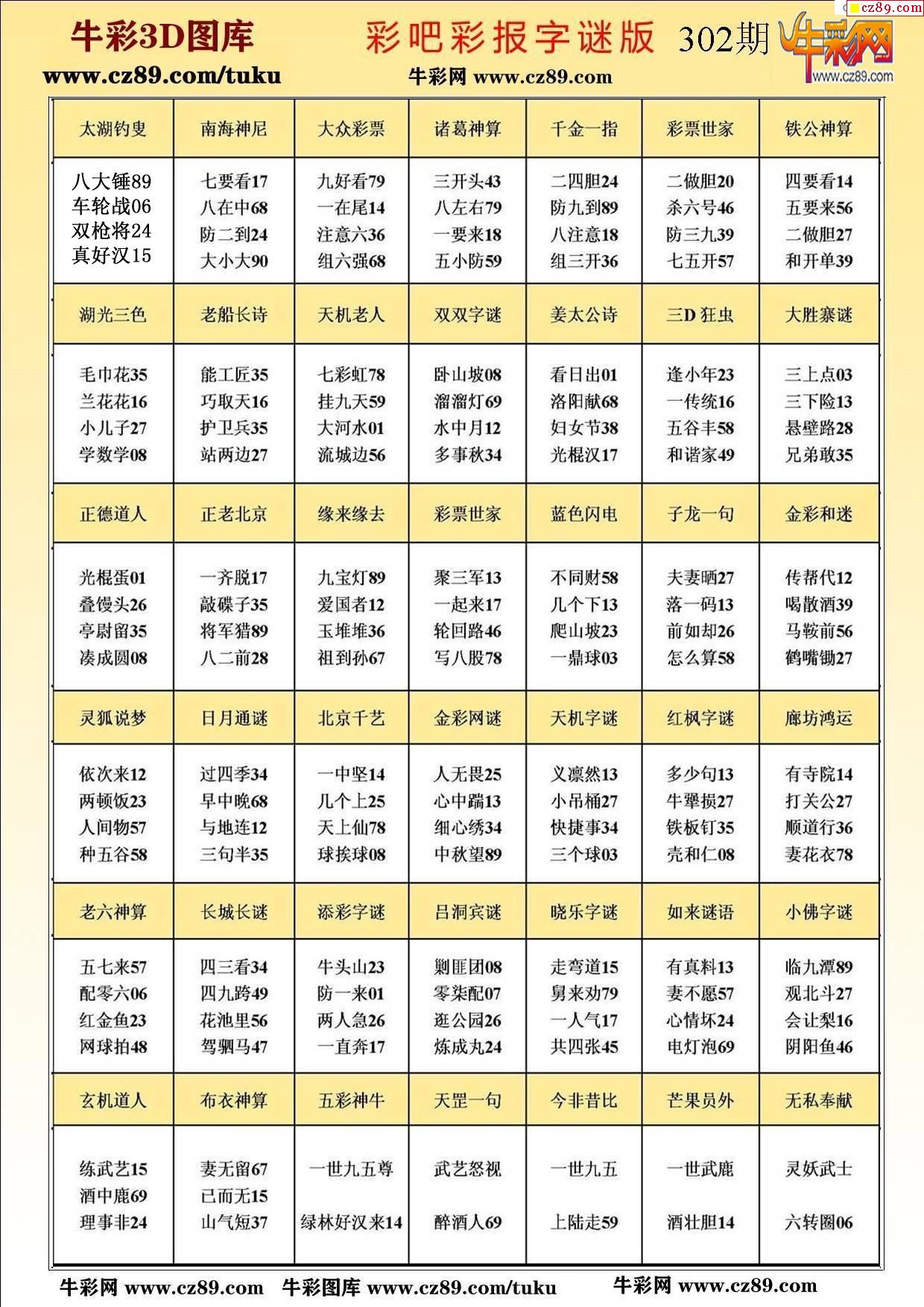 > 牛彩版3D字谜彩报图25年302期打印版