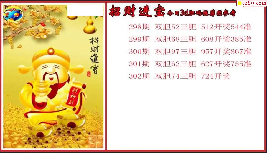 > 25年302期3d 招财进宝今日胆码推荐图参考