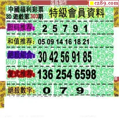 真藏机图25年303期福彩3D图迷