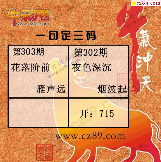 > 2025303期牛彩一句定三码
