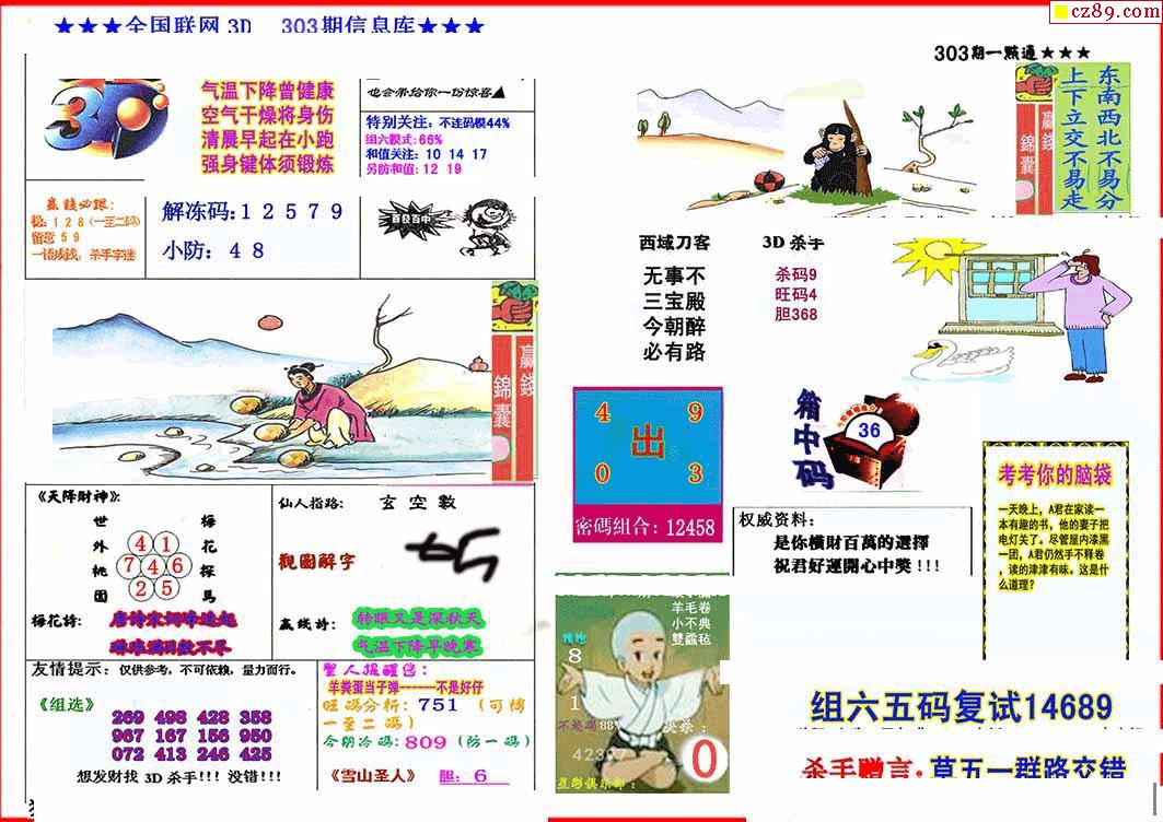 > 杀手+鑫马快报+字迷汇总25年303期3d图谜